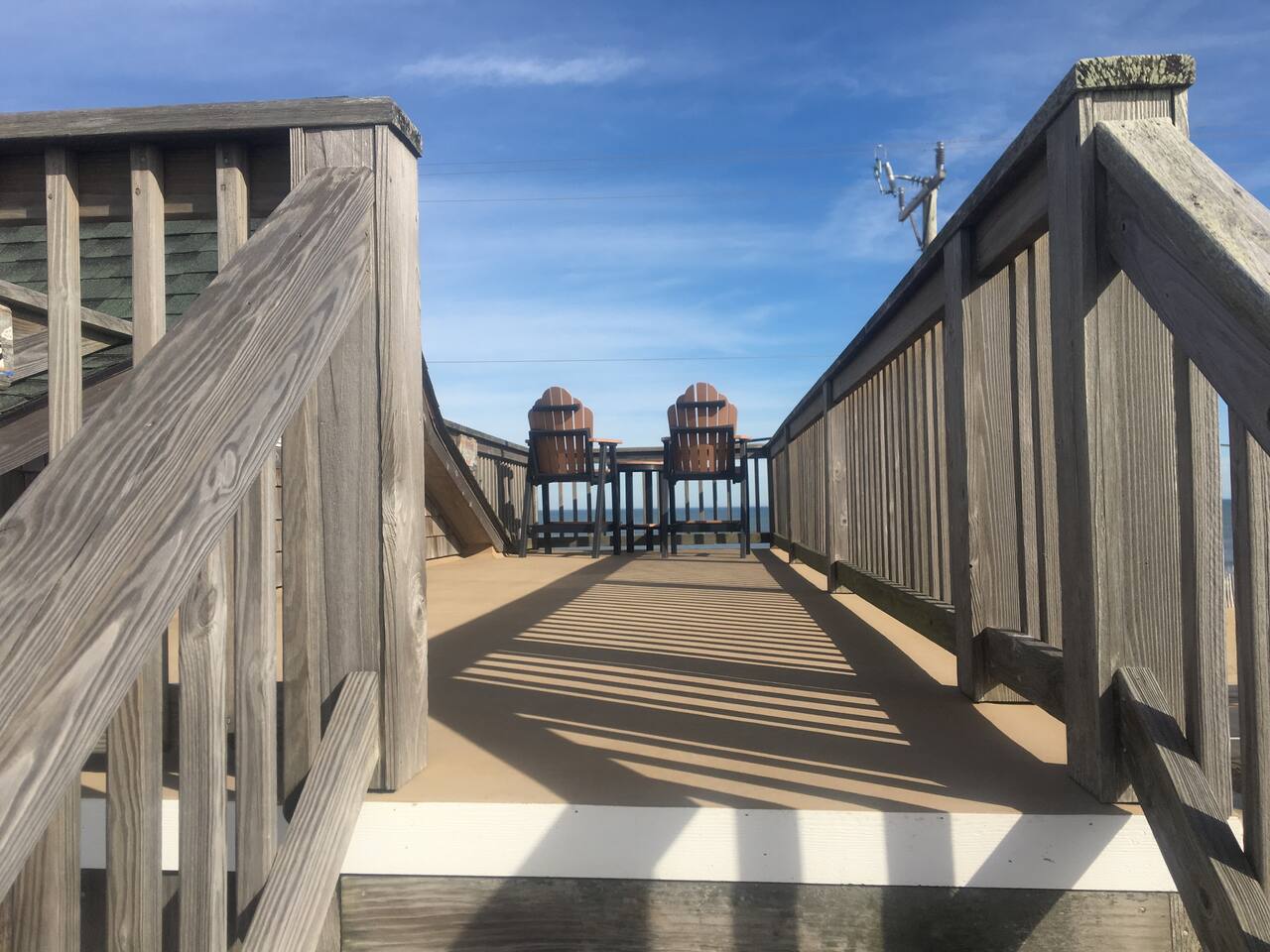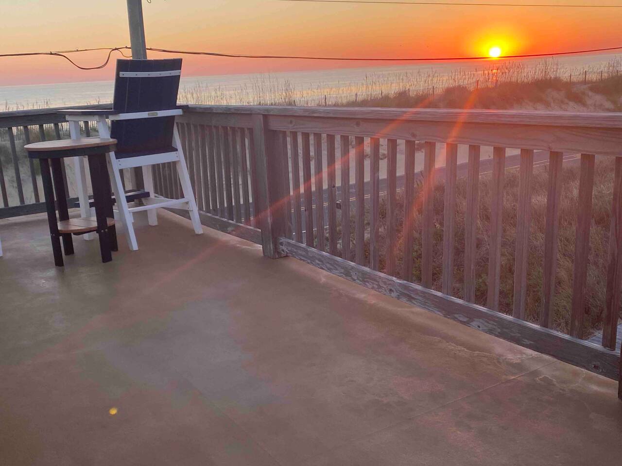 We are located on Beach Road between mile marker 4.0 and 4.5 in Kitty Hawk. You can't beat the beach view and how close the ocean is! Access to the beach is via the beach access point which is about 200 feet down the road. During the busier summer months you can sit out on the front deck and people-watch as cars and bikes go down beach road. There are year-round Outer Banks residents to the left, right, and behind our house and it is relatively quiet. On summer nights you can sometimes hear soft music being played from Hurricane Mo's (restaurant) which is about a 5 minute walk from the house, and it stops playing by 10:00pm. Another 5 minute walk from the house is another great restaurant called The Black Pelican. The house is walking distance to great restaurants, and a short driving distance to other restaurants, attractions, shopping, and all the the Outer Banks has to offer.
