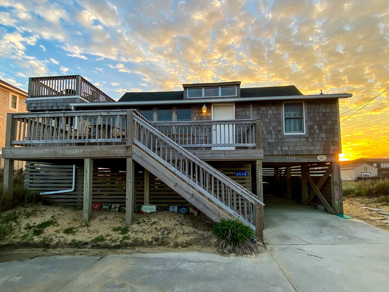 Just steps from the beach! The beach and ocean are right in front of the house, and beach access is about 200 feet at the corner! Walking distance to two great restaurants (Black Pelican and Hurricane Mo's), and 7-Eleven. Taxis/Ubers are very cheap in the Outer Banks.